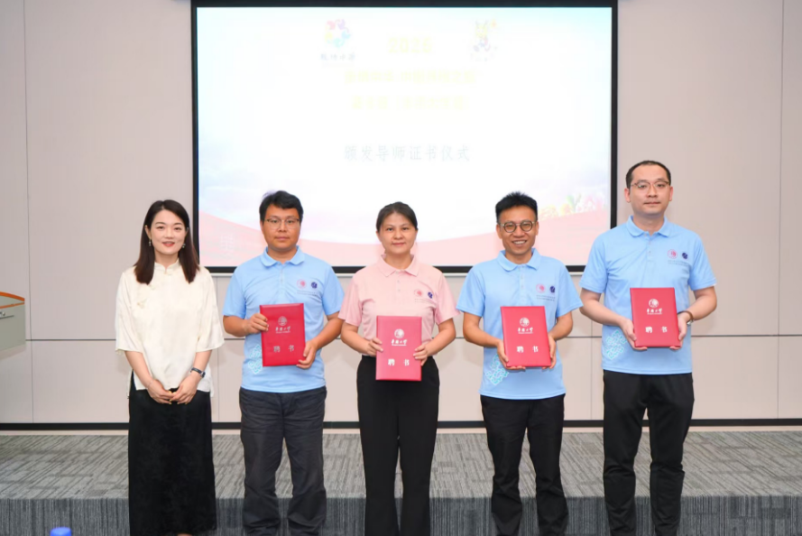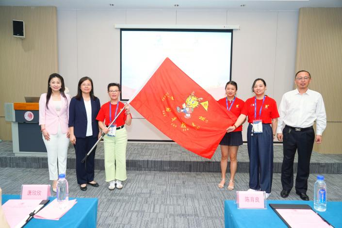 陈育良、涂伟、叶荔辉共同为本期夏令营授营旗,宣告夏令营开营,随后薛子燕为夏令营实践导师颁发聘书。