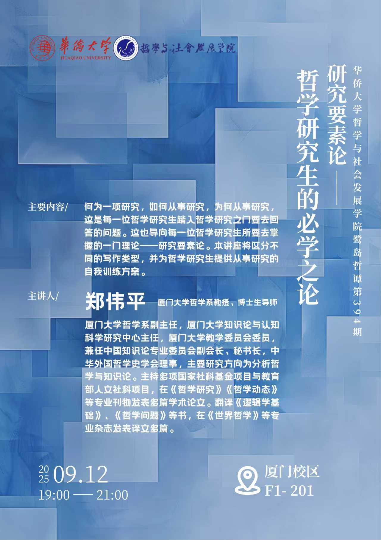【讲座预告】哲社学院鹭岛哲谭系列讲座第394期之研究要素论——哲学研究生的必学之论