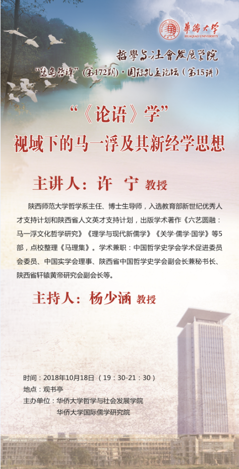 【讲座预告】鹭岛哲谭第172期·国际孔孟论坛第15讲